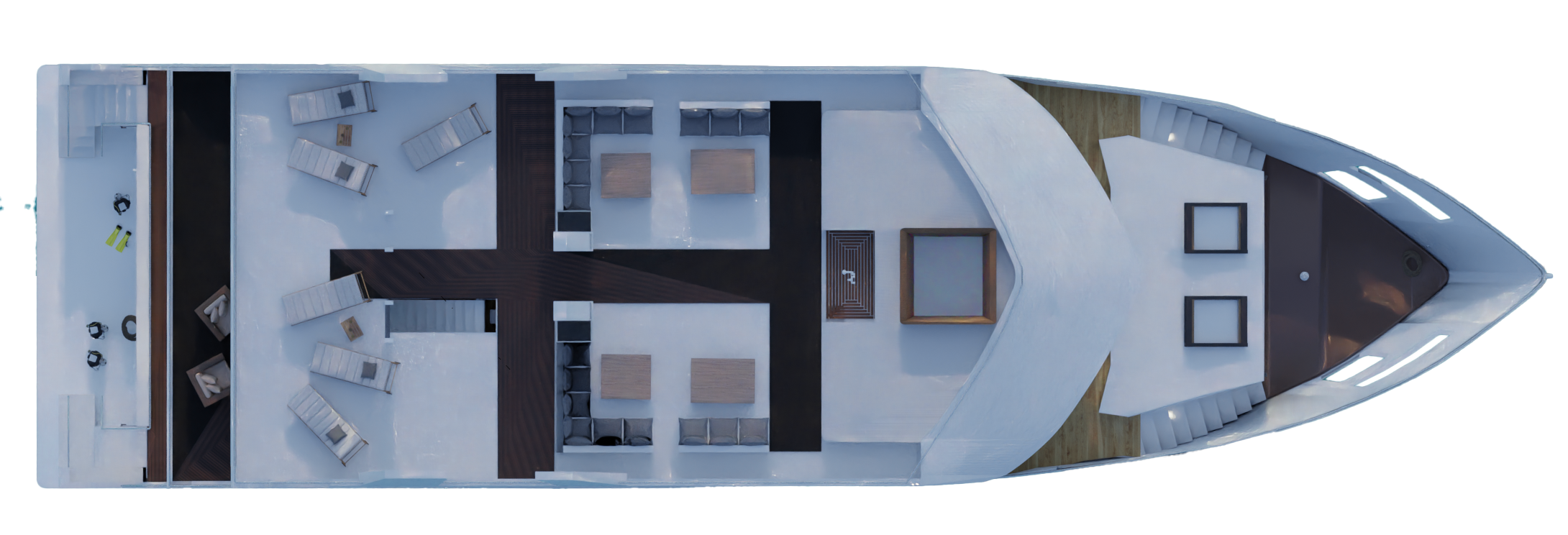 Das Sonnendeck bietet die Möglichkeit in Sonnenstühlen, Lounge-Sessel oder der Liegefläche zu relaxen. Zusätzlich ist ein Jacuzzi vorhanden, der für die notwendige Erfrischung sorgt.