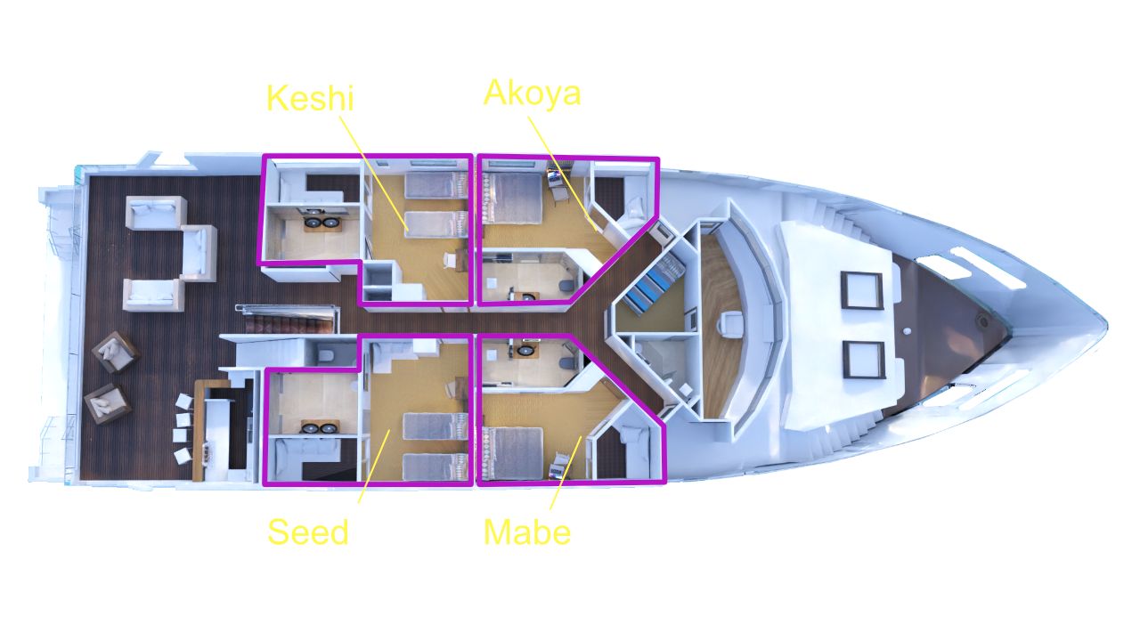 4 luxuriöse Zimmer, jedes davon mit einer Outdoor-Lounge.